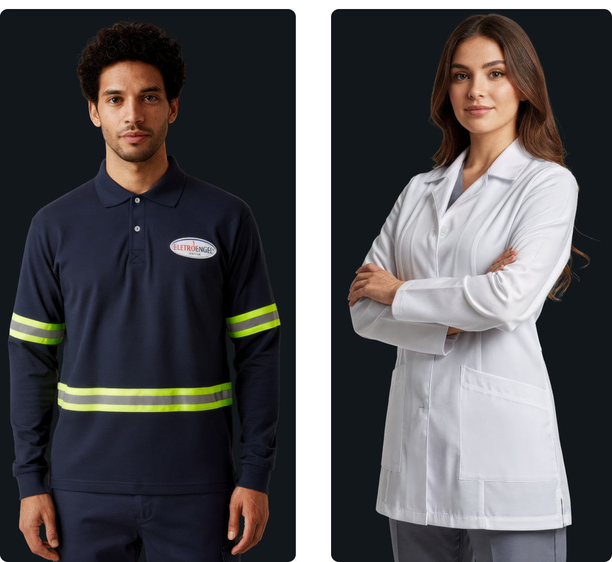 Nossos uniformes são produzidos com tecidos de alta qualidade e costuras reforçadas, garantindo resistência, conforto e longa vida útil, mesmo em rotinas intensas de trabalho.
